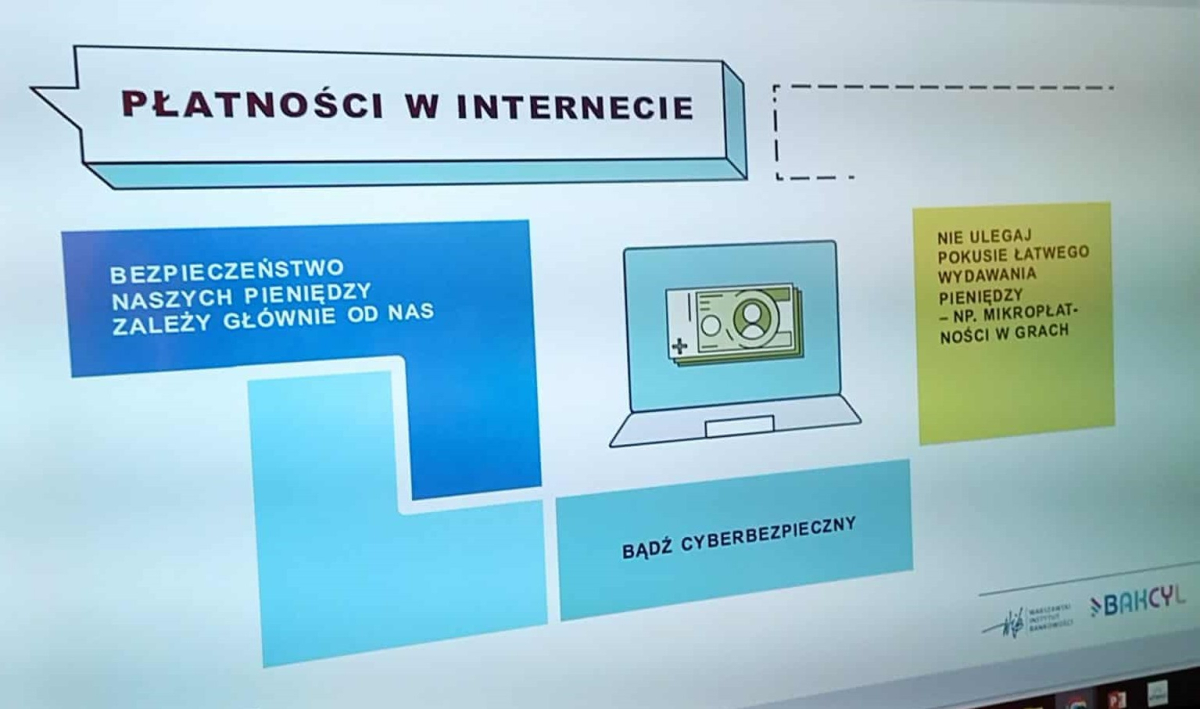 Nie zabrakło również tematu bezpieczeństwa w cyberprzestrzeni – uczniowie uczyli się zasad bezpiecznych płatności w Internecie i płatności mobilnych oraz sposobów rozpoznawania potencjalnych oszustów finansowych.