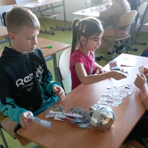 Podczas zajęć uczniowie poznali funkcje pieniądza, dowiedzieli się, na czym polega obrót bezgotówkowy, jak planować dochody i wydatki w życiu codziennym, a także jakie korzyści przynosi systematyczne oszczędzanie.