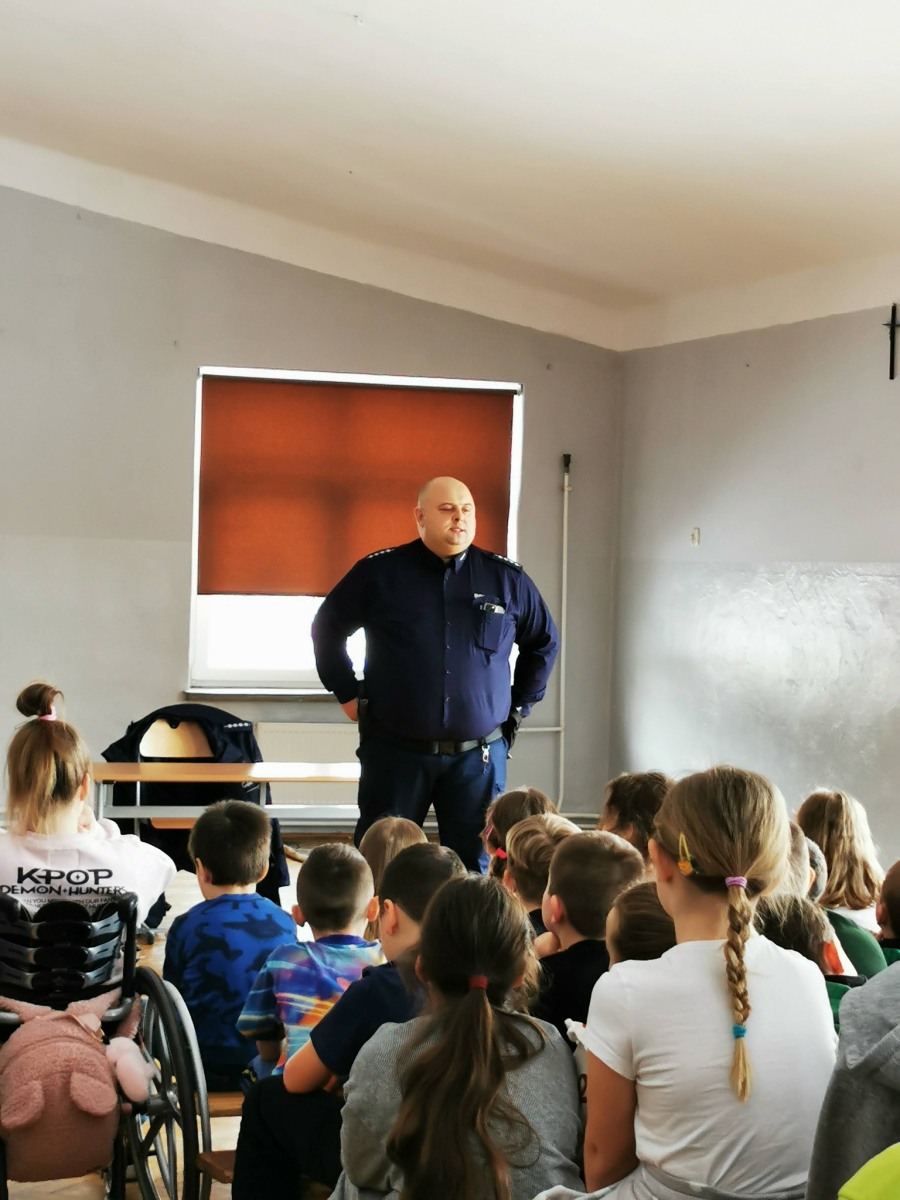 Dziś w naszej szkole i przedszkolu odbyło się spotkanie z policjantem, który opowiedział o zasadach bezpieczeństwa podczas ferii zimowych. Dowiedzieliśmy się, jak bezpiecznie bawić się na śniegu, jak zachować ostrożność na lodzie oraz jak dbać o swoje bezpieczeństwo w domu i poza nim.