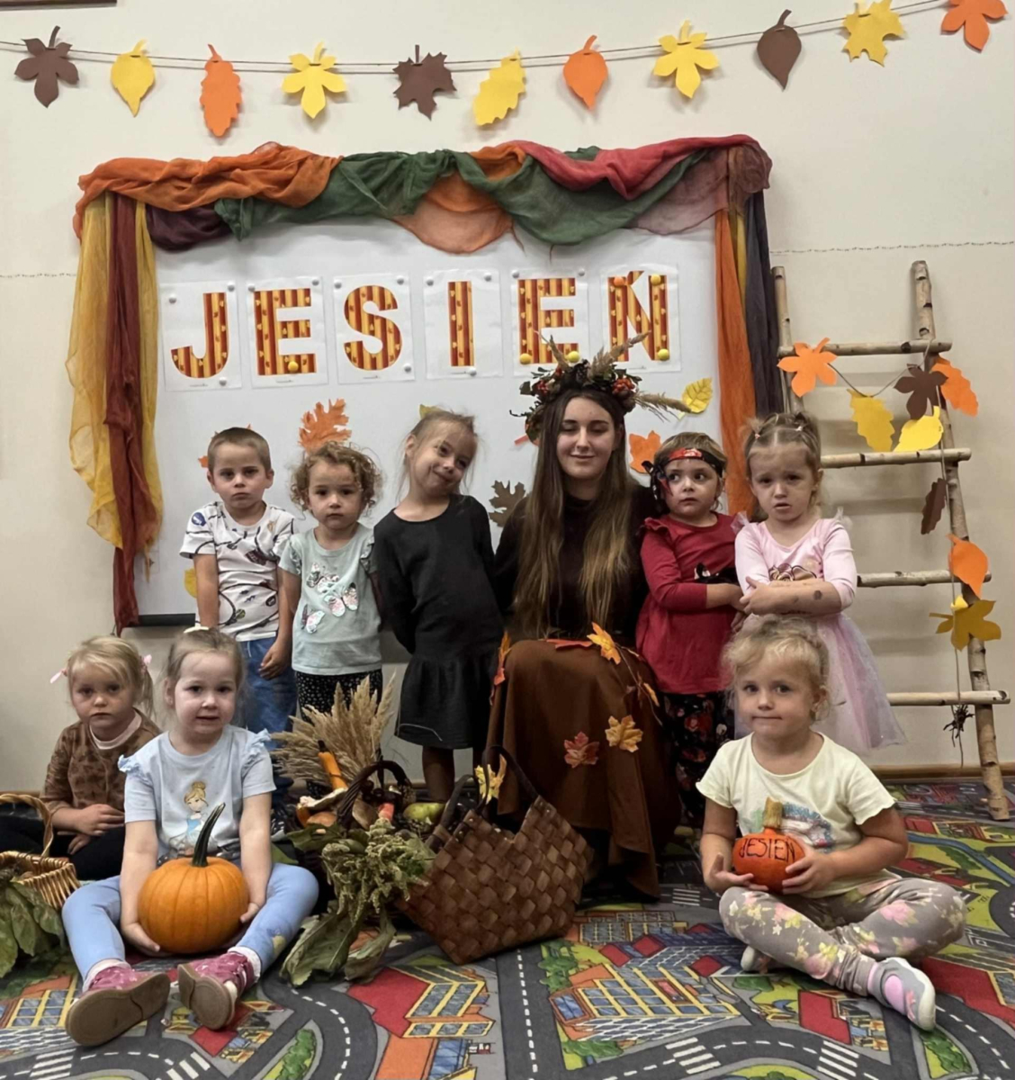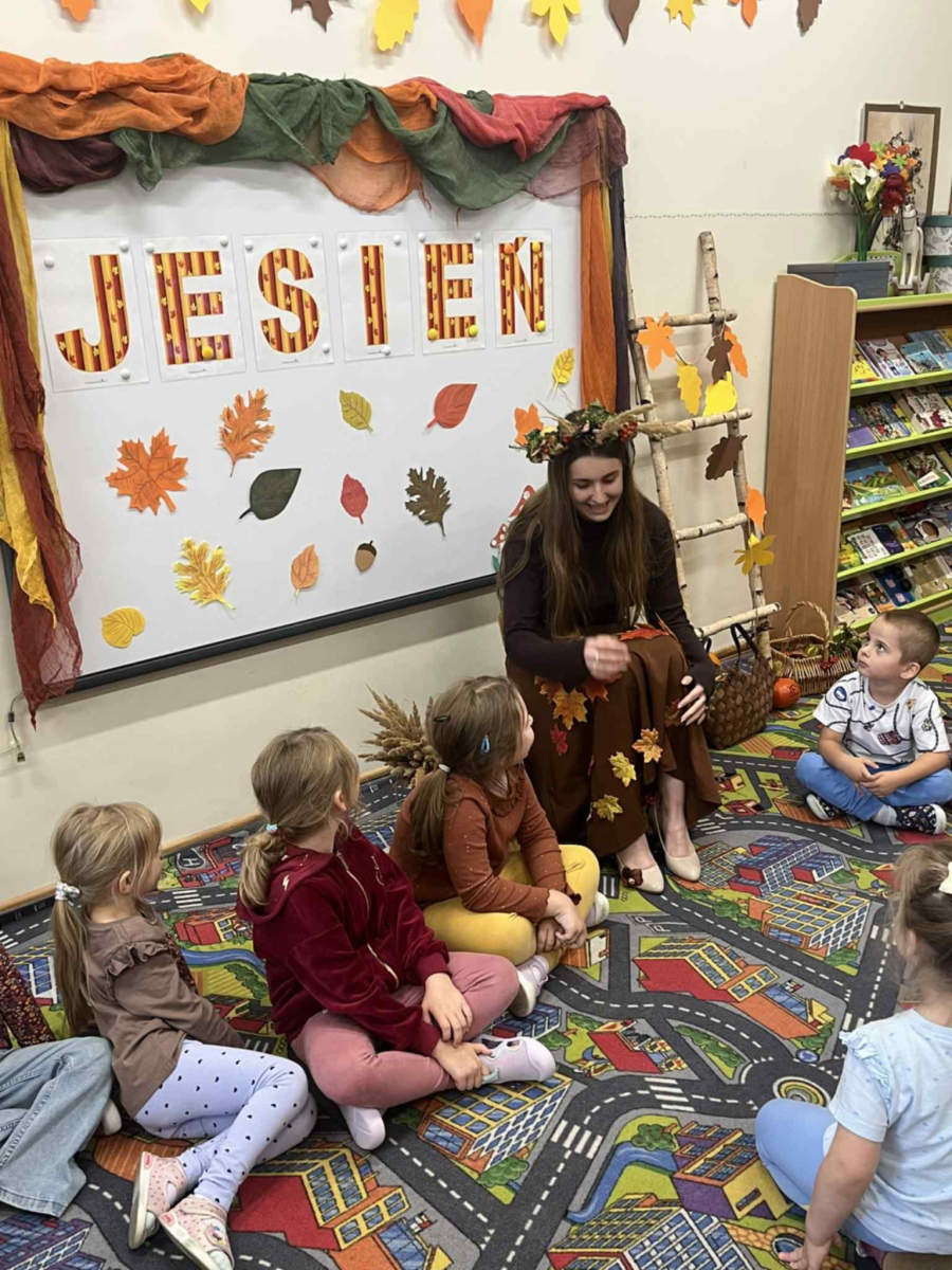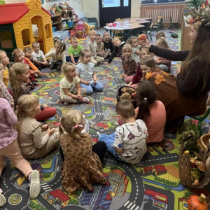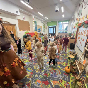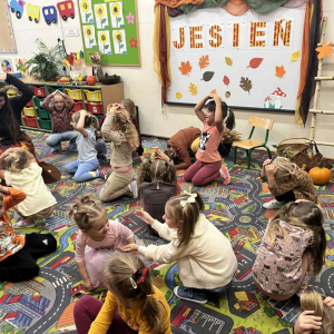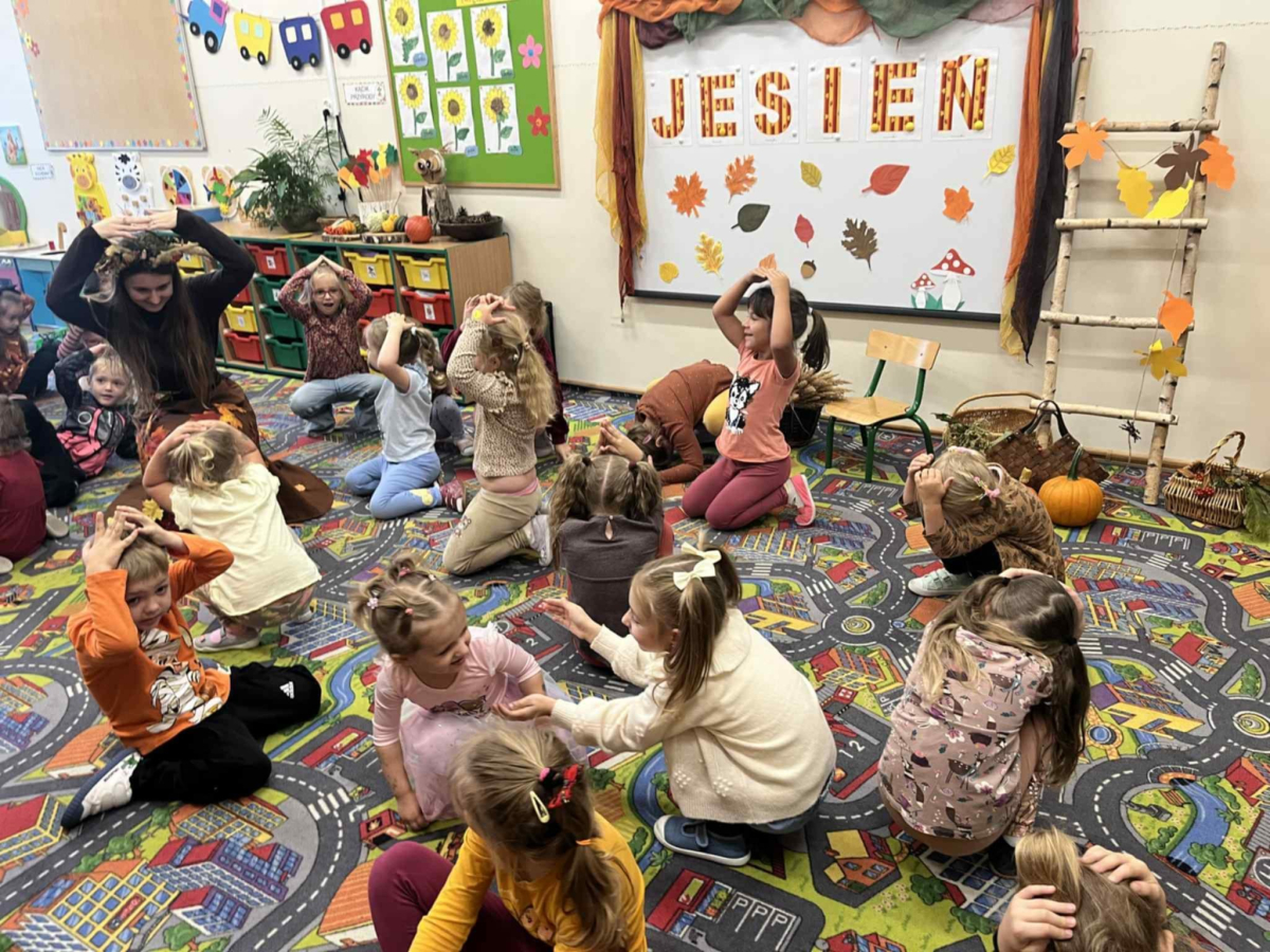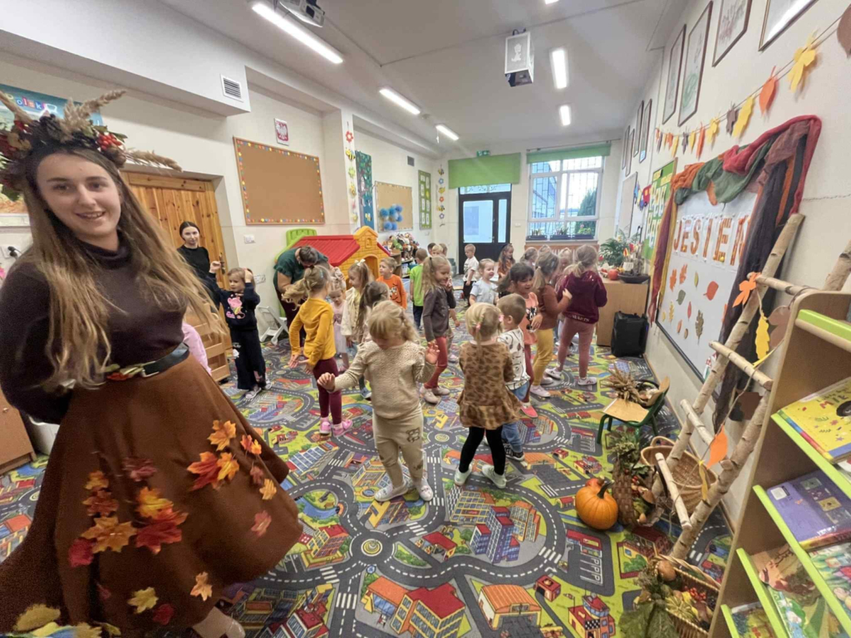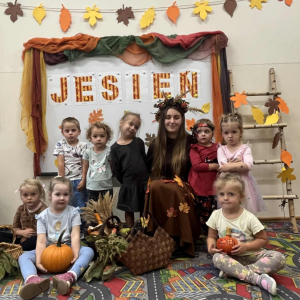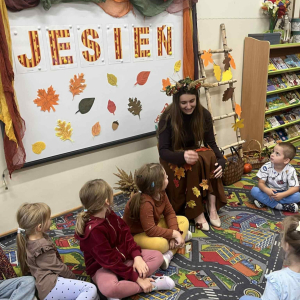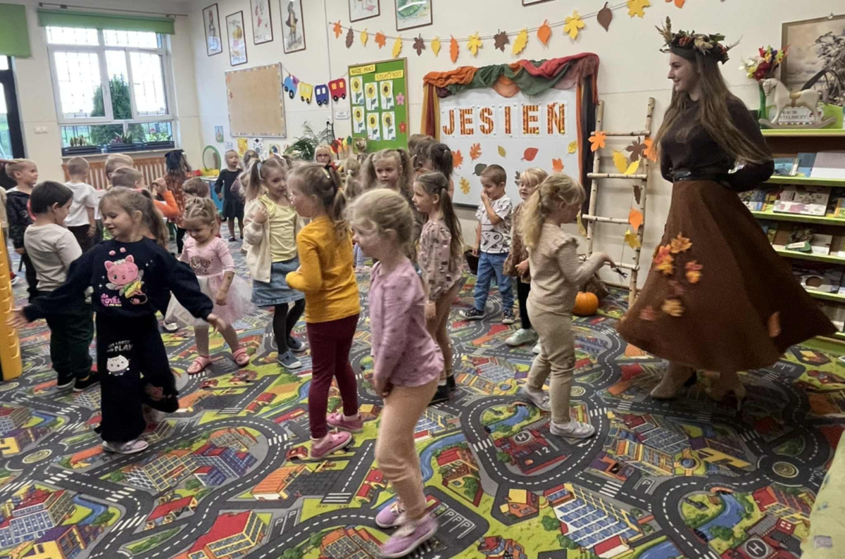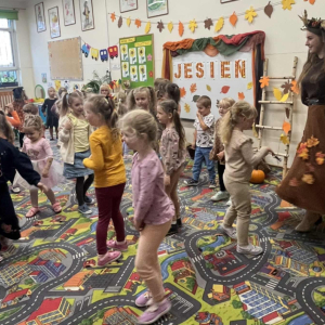 i zaprosiła je do wspólnej zabawy. Były zagadki, zabawy i jesienny taniec .
