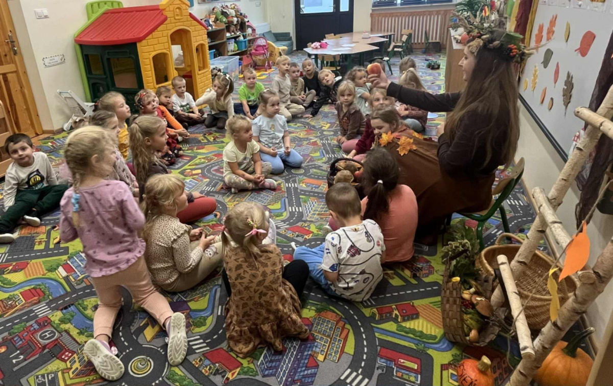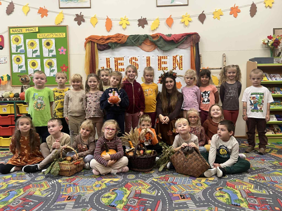 Pani Jesień razem z dziećmi oglądała jesienne dary