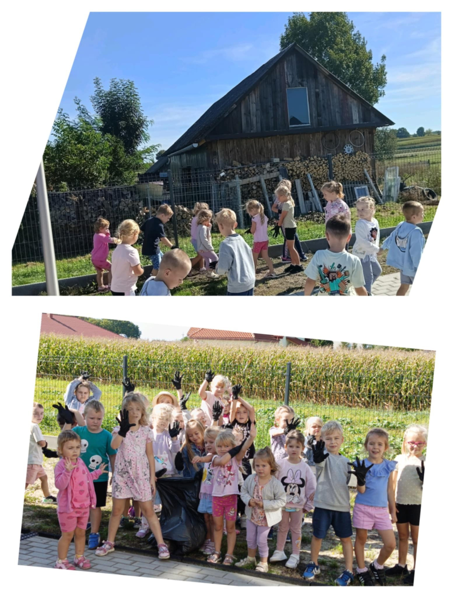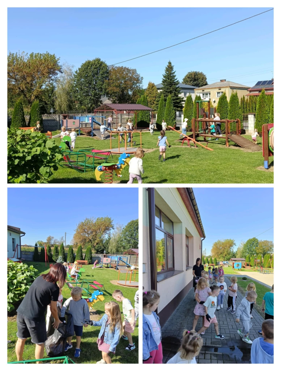 Wyszliśmy na podwórko i teren wokół szkoły, żeby pozbierać śmieci. Dzięki temu nasza Ziemia zrobiła się czysta i piękna!