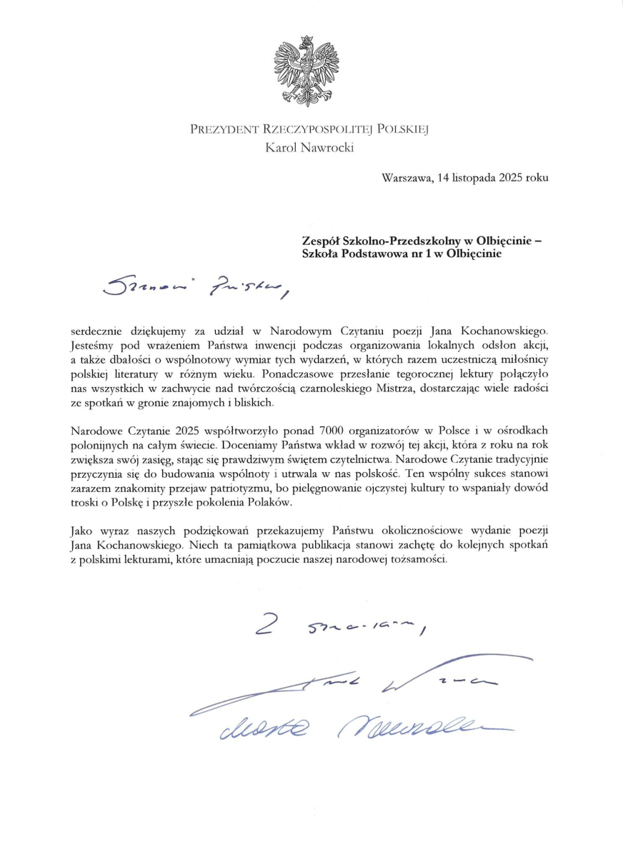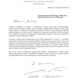 Jest nią okolicznościowe wydanie poezji Jana Kochanowskiego, które otrzymaliśmy w ramach podziękowania za udział w akcji Narodowe Czytanie , zorganizowanej w naszej szkole w ostatnim tygodniu września.