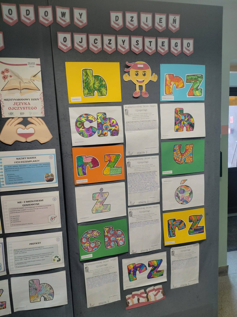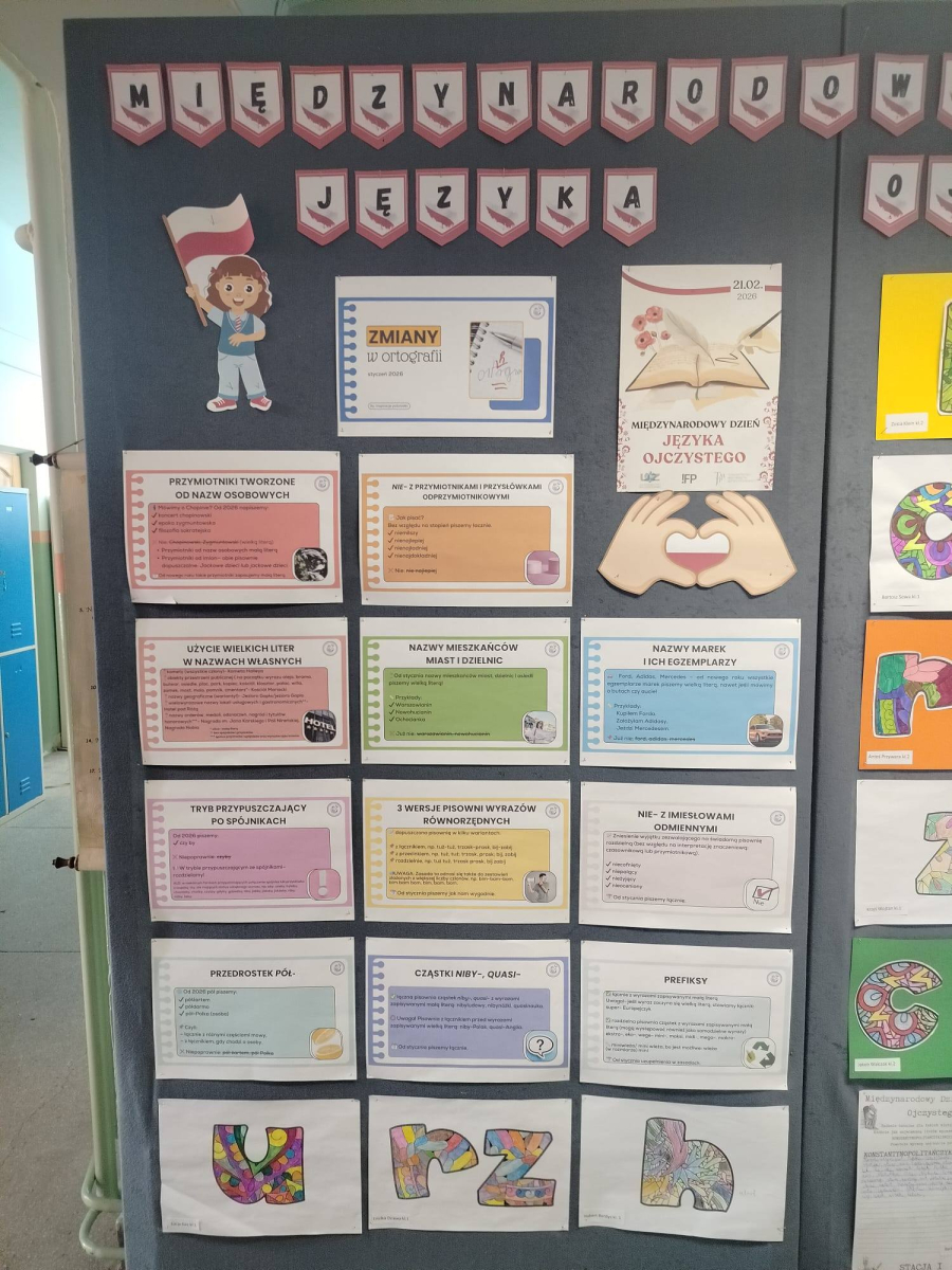 21 lutego 2026 roku obchodziliśmy Międzynarodowy Dzień Języka Ojczystego. Z tej okazji w naszej szkole podjęliśmy szereg działań nawiązujących do tej okazji. Na szkolnym korytarzu stanęła gazetka informująca o nowych zasadach pisowni, wprowadzonych od stycznia bieżącego roku. Najmłodsi uczniowie malowali mandale ortograficzne i tworzyli wyrazy z podanego ciągu lier. Ich prace ozdobiły szkolną gazetkę. Starsi uczniowie rozwiązywali zadania na platformie Kahoot i na kartach pracy, poszerzając swoje słownictwo, podnosząc kompetencje językowe oraz kształtując poczucie tożsamości narodowej.