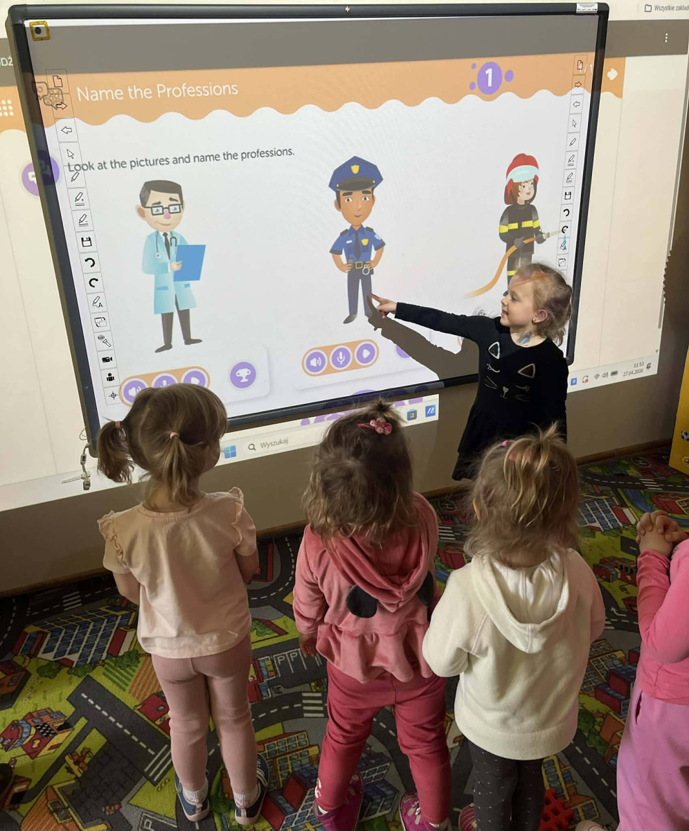 Na zajęciach z języka angielskiego najmłodsza grupa przedszkolaków poznawała nazwy zawodów.