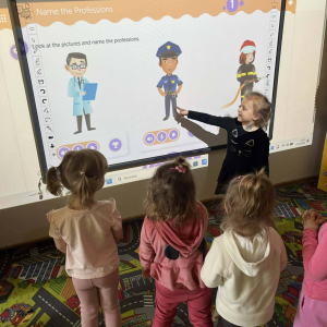 Korzystaliśmy z platformy MTALENT. Dzieci z dużym zaangażowaniem uczestniczyły w zajęciach, chętnie odpowiadały i świetnie się bawiły, ucząc się nowych słówek.