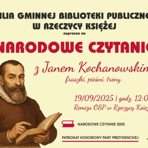 Dziś przedstawiciele naszej szkoły mieli przyjemność uczestniczyć w wyjątkowej akcji Narodowego Czytania, zorganizowanej przez Filię Gminnej Biblioteki Publicznej w Rzeczycy Księżej.