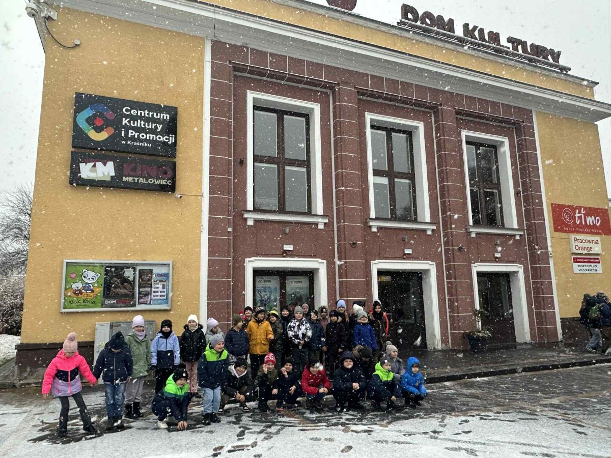 Dziś przedszkolaki oraz uczniowie klas I–III wybrali się do Centrum Kultury i Promocji w Kraśniku, aby obejrzeć niezwykły spektakl teatralny pod tytułem „Ocean to mój dom”. Przedstawienie przeniosło dzieci w barwny, pełen przygód świat morskich stworzeń. Młodzi widzowie z dużym zainteresowaniem śledzili losy bohaterów, reagując żywo na humorystyczne dialogi i efekty sceniczne. Wyjazd przebiegł w świetnej atmosferze, a uczniowie wrócili do szkoły pełni pozytywnych emocji. Dziękujemy organizatorom oraz opiekunom za umożliwienie dzieciom udziału w tym wartościowym wydarzeniu kulturalnym.