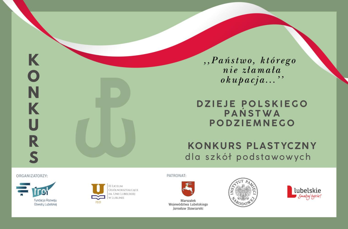 Serdecznie zapraszamy do udziału w konkursie plastycznym pt. „Państwo, którego nie złamała okupacja – dzieje Polskiego Państwa Podziemnego”