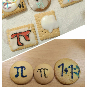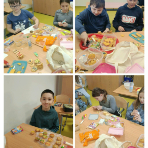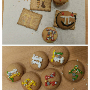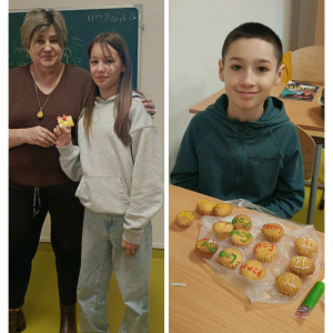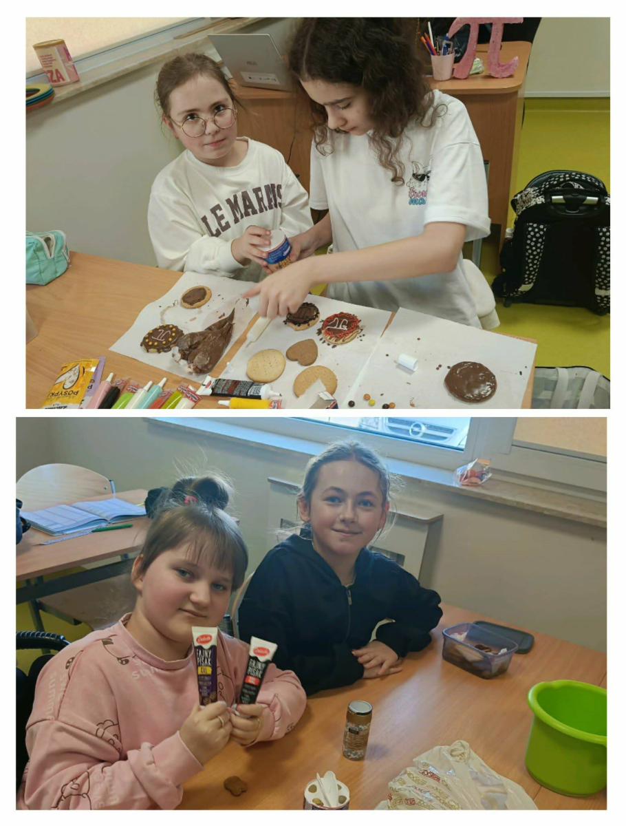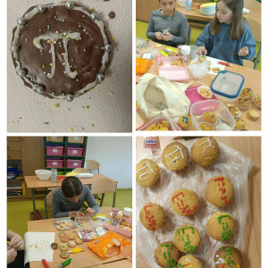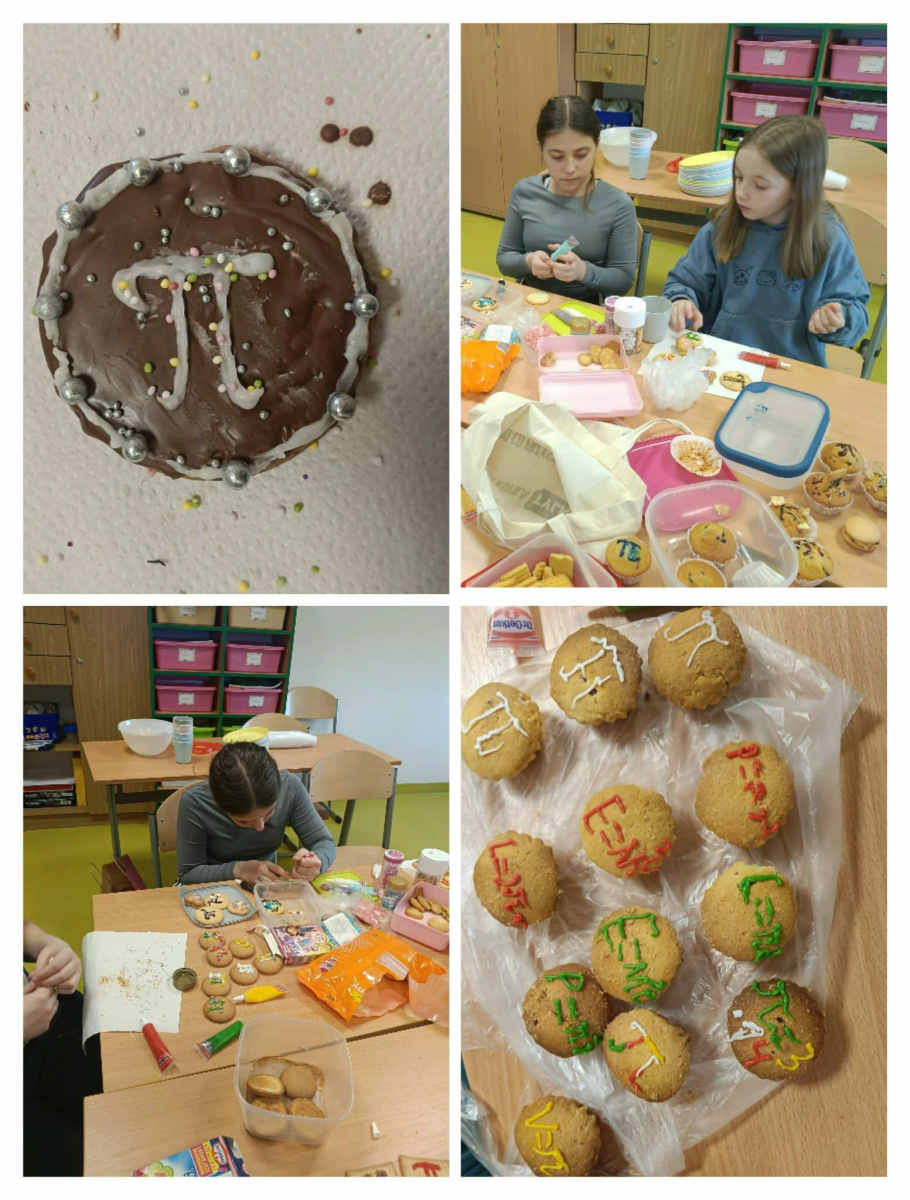 Klasa 4 przygotowała prawdziwe matematyczne smakołyki! Uczniowie upiekli pyszne ciasteczka i babeczki, które w szkole dekorowali symbolami liczby π oraz różnymi wzorami matematycznymi. Było słodko, kreatywnie i bardzo matematycznie.