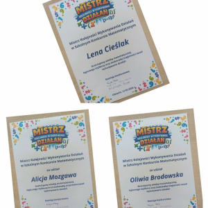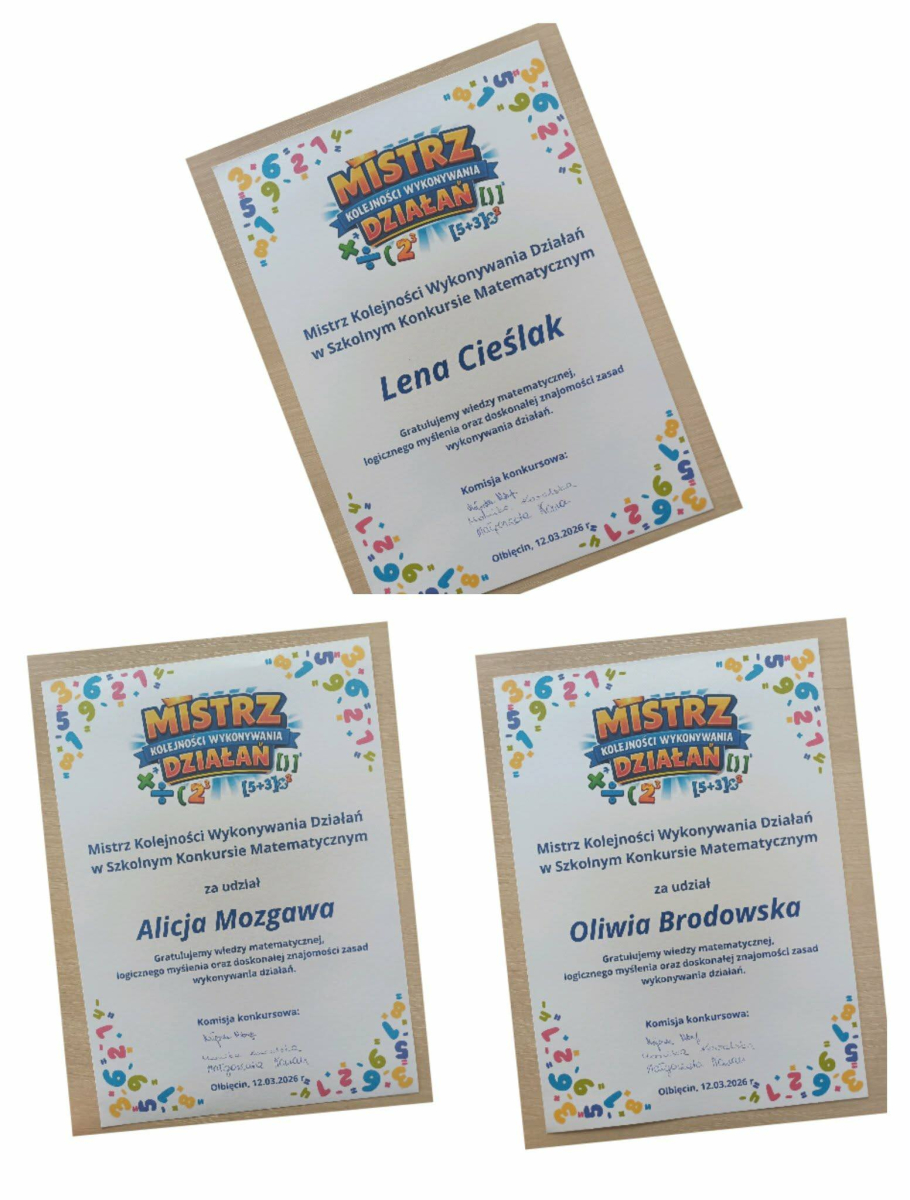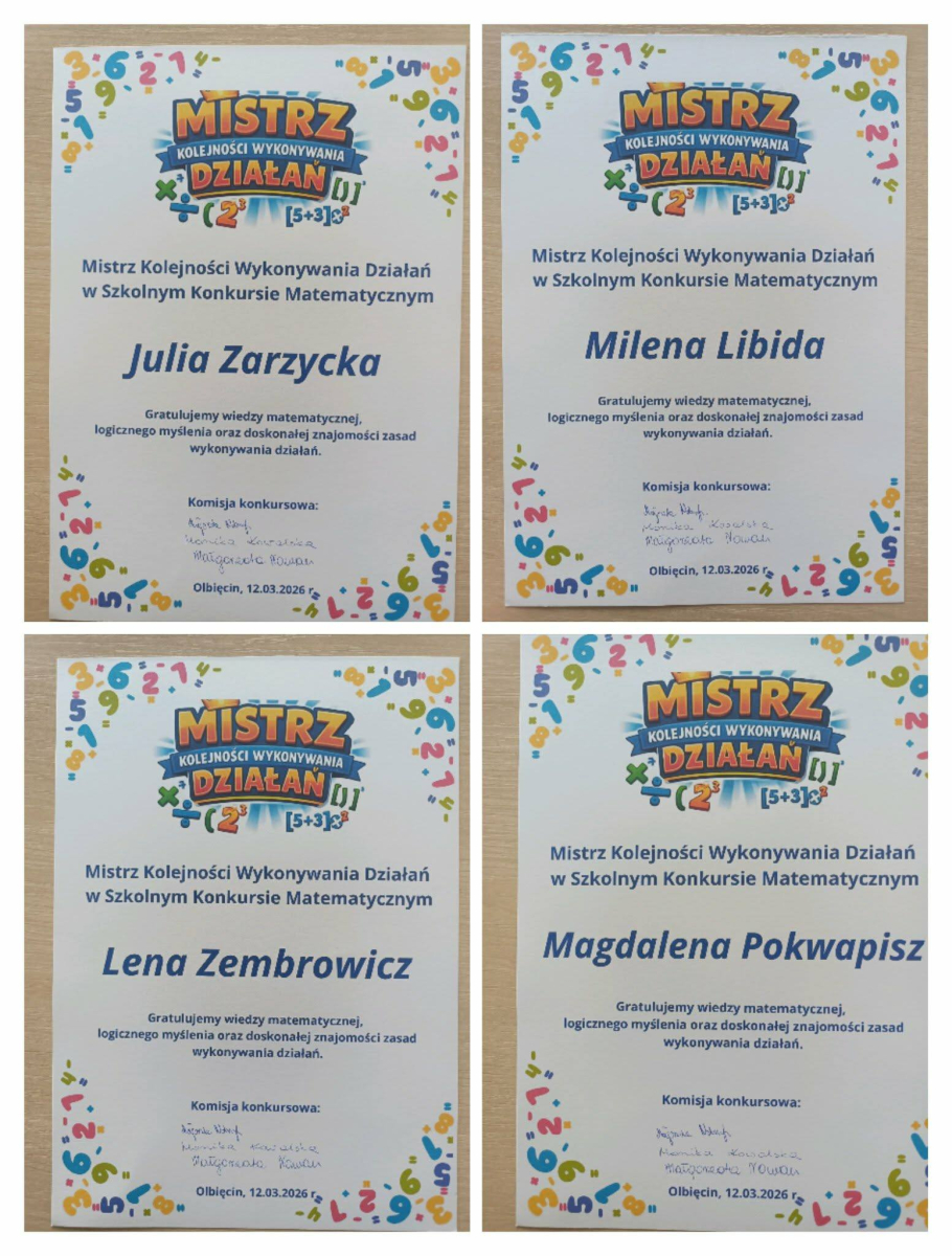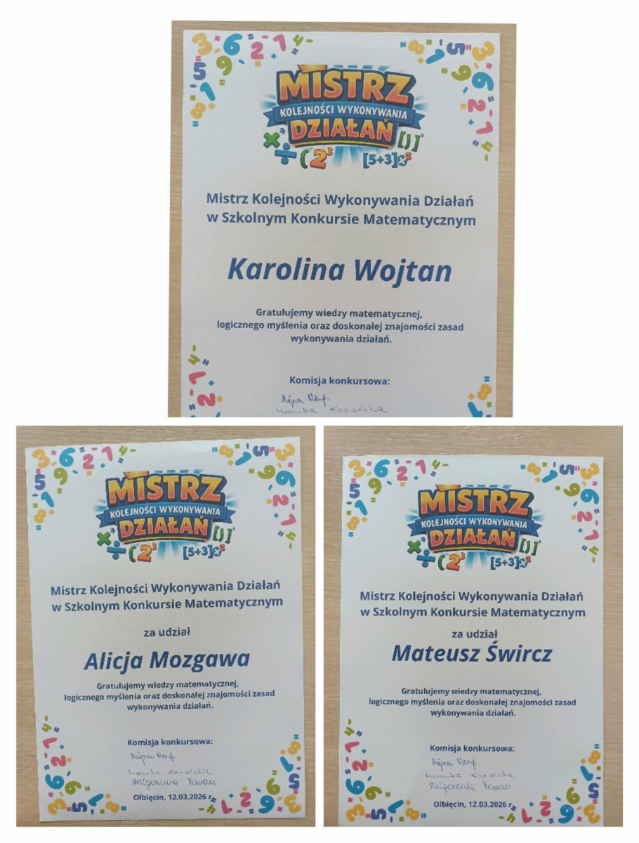 Uczniowie klas 6–7 wzięli również udział w szkolnym konkursie „Mistrz Kolejności Wykonywania Działań”.