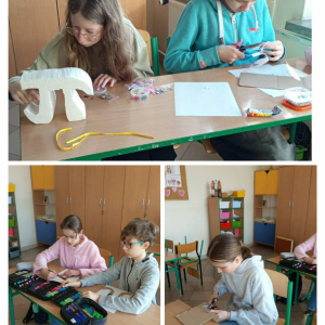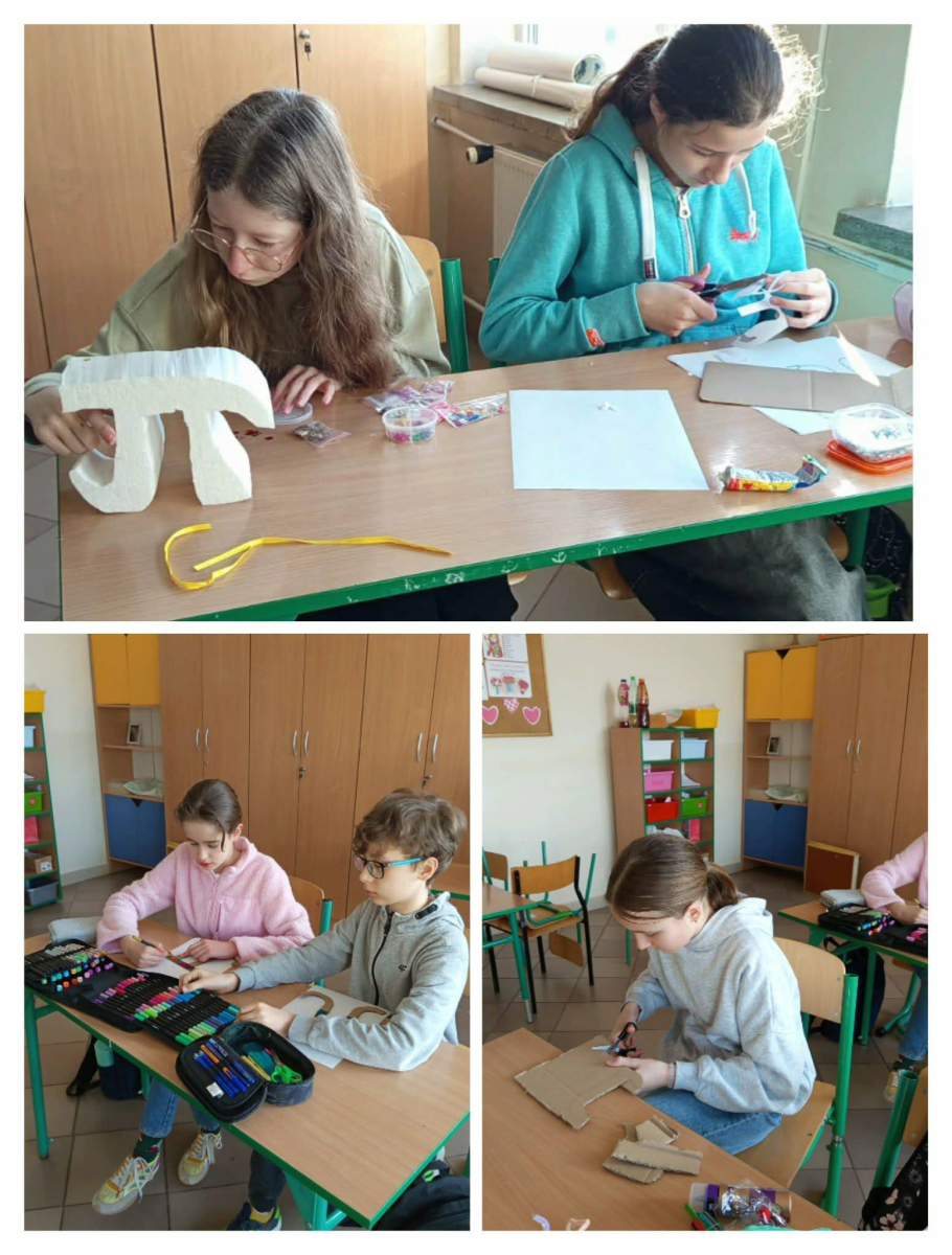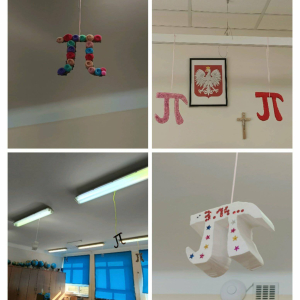 Uczniowie klas 5–7 wykonali ciekawe modele liczby π oraz przygotowali matematyczne dekoracje, które ozdobiły sale lekcyjne i szkolny korytarz. Dzięki nim w całej szkole można było poczuć prawdziwą matematyczną atmosferę