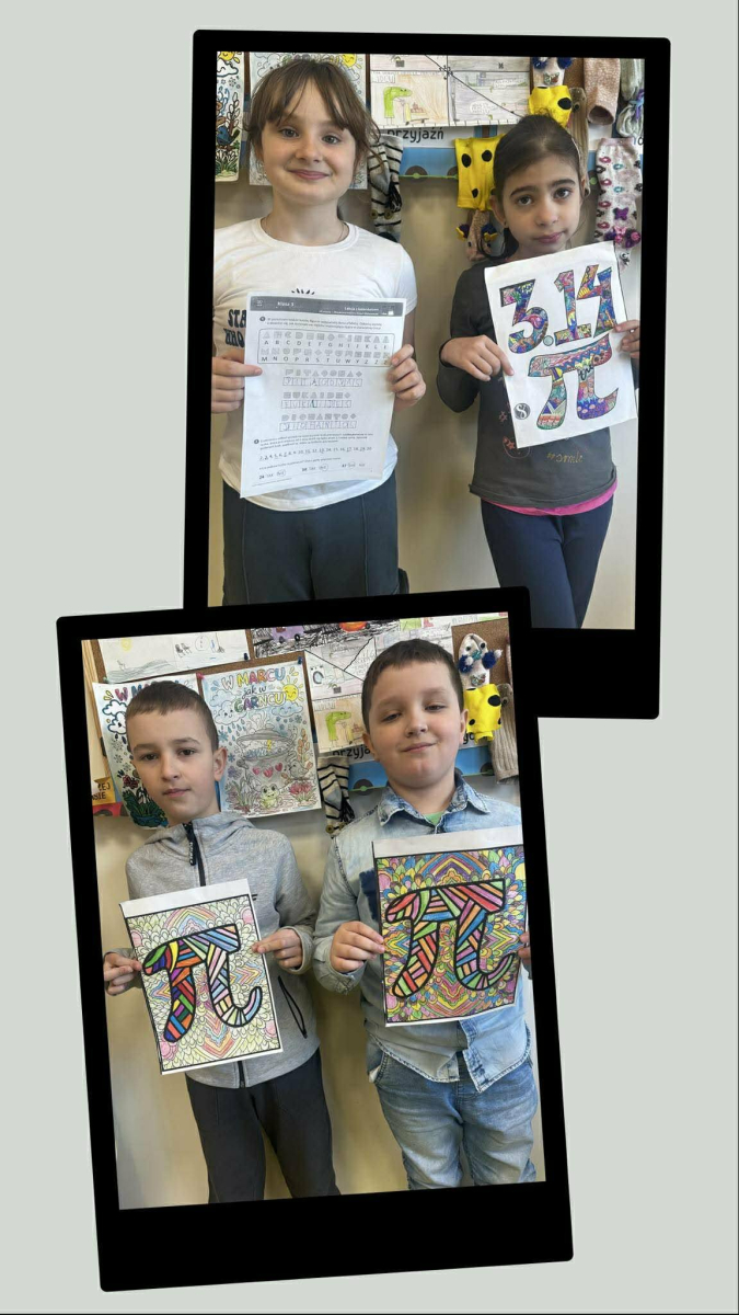 Klasy 0–3 wykonały piękne, kolorowe prace przedstawiające liczbę π. Uczniowie z ogromnym zaangażowaniem kolorowali i ozdabiali swoje prace, pokazując jak ciekawa i kolorowa może być matematyka.