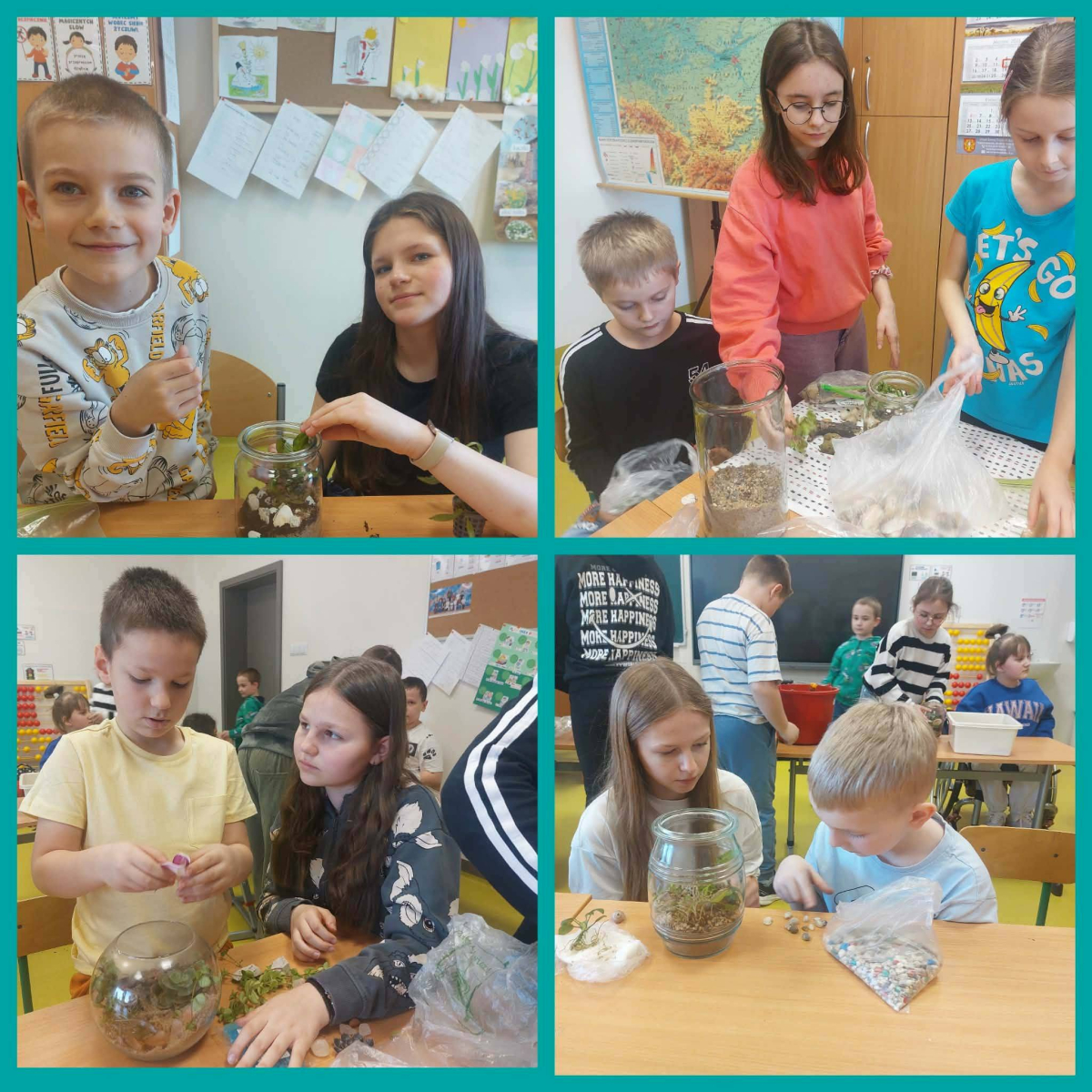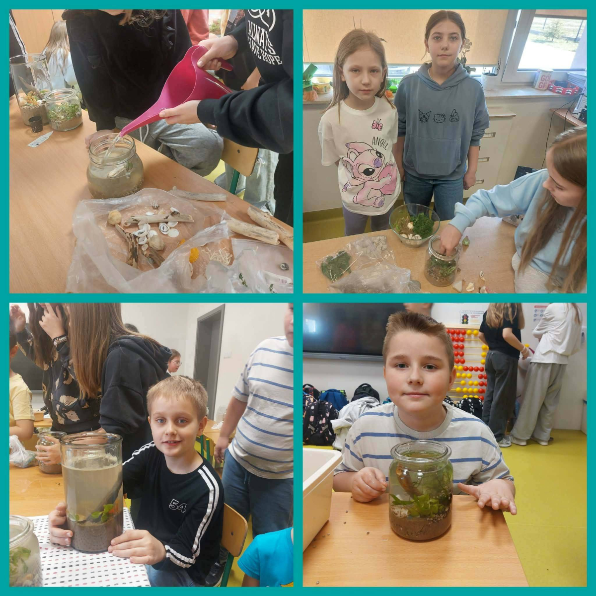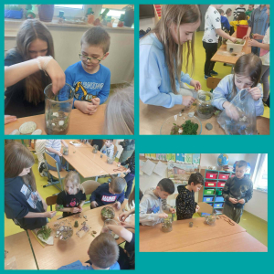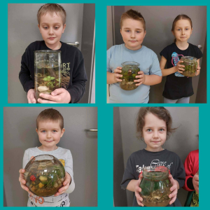 Podczas zajęć dzieci własnoręcznie przygotowały miniaturowe akwaria z roślinami wodnymi, ucząc się przy tym współpracy, kreatywności oraz troski o przyrodę. Powstało wiele pięknych i pomysłowych kompozycji, które zachwycają swoim wyglądem.