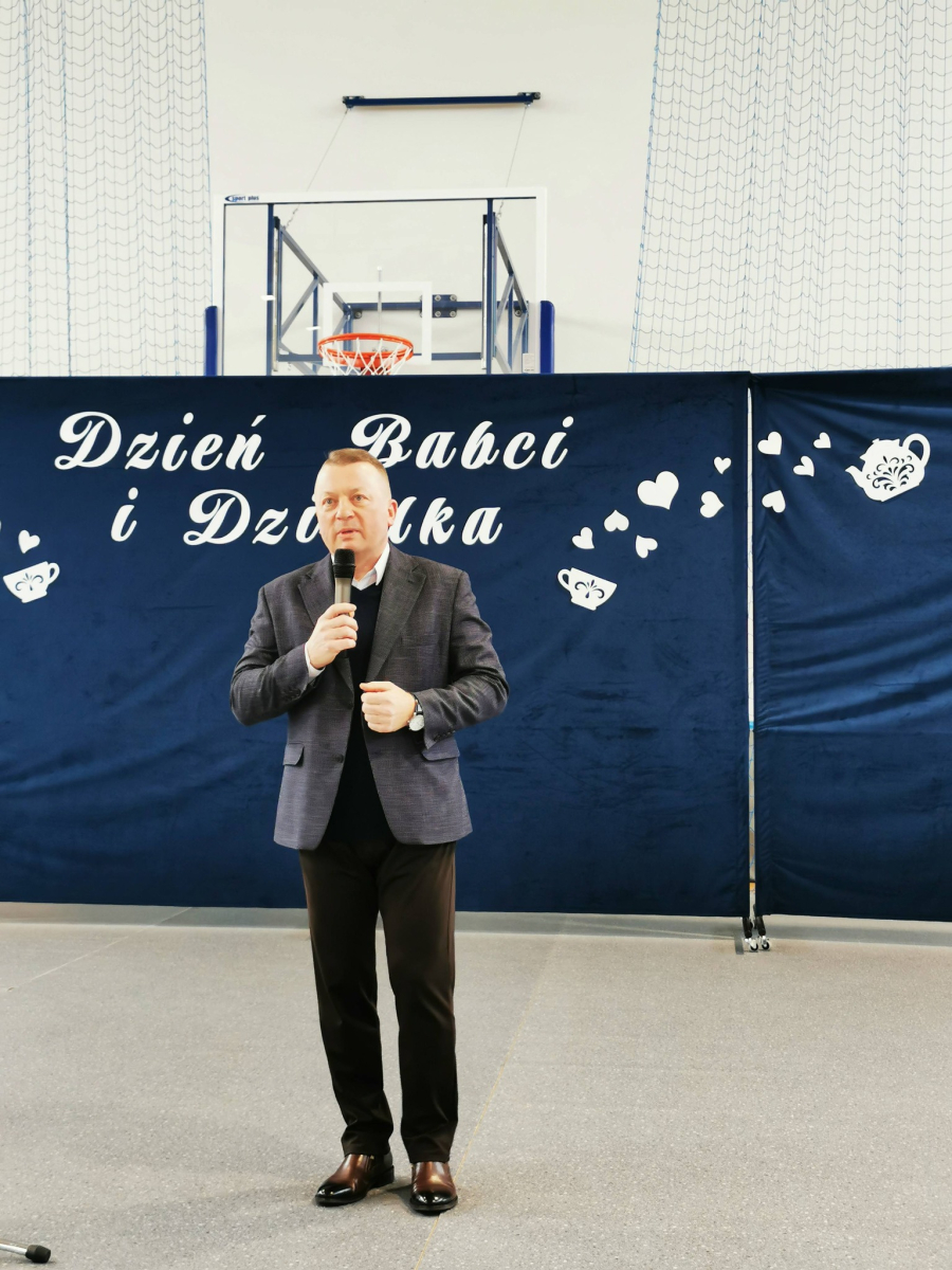 Uroczystość rozpoczęła Pani Małgorzata Nowak, która w imieniu Dyrektor ZSP w Olbięcinie powitała zaproszonych Gości. Następnie Pan Tomasz Mularczyk, Sekretarz Gminy Trzydnik Duży, przekazał Dziadkom ciepłe życzenia z okazji ich święta.