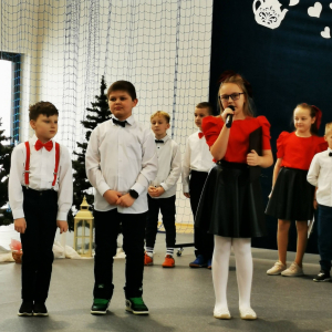 Piękną część artystyczną przygotowały dzieci z przedszkola oraz uczniowie klas I, II i III, nagrodzeni gromkimi brawami za swoje występy